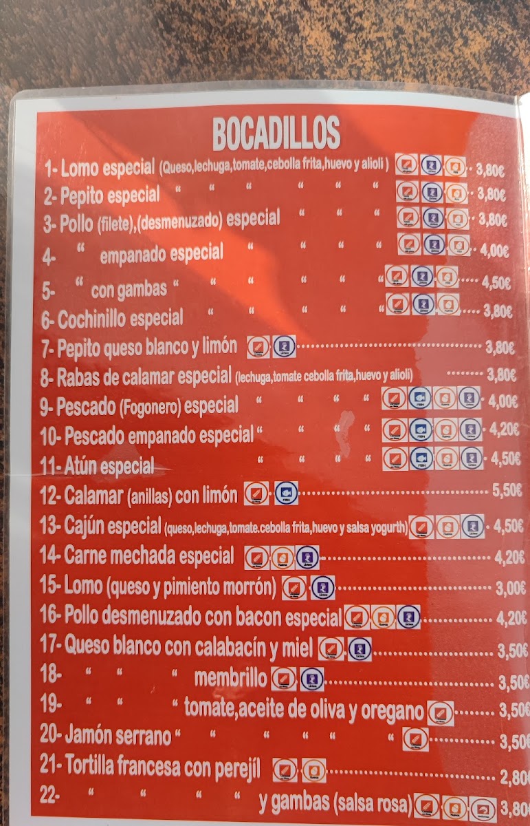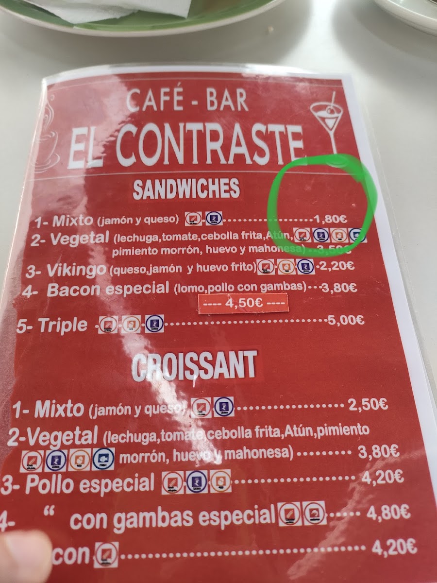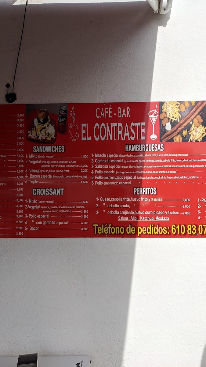Café-Bar El Contraste Menu